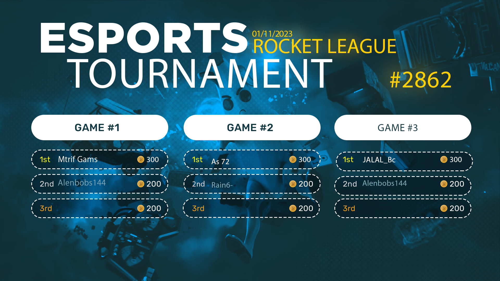 Esports Tournament #2862-ROCKET LEAGUE- 01/11/2023