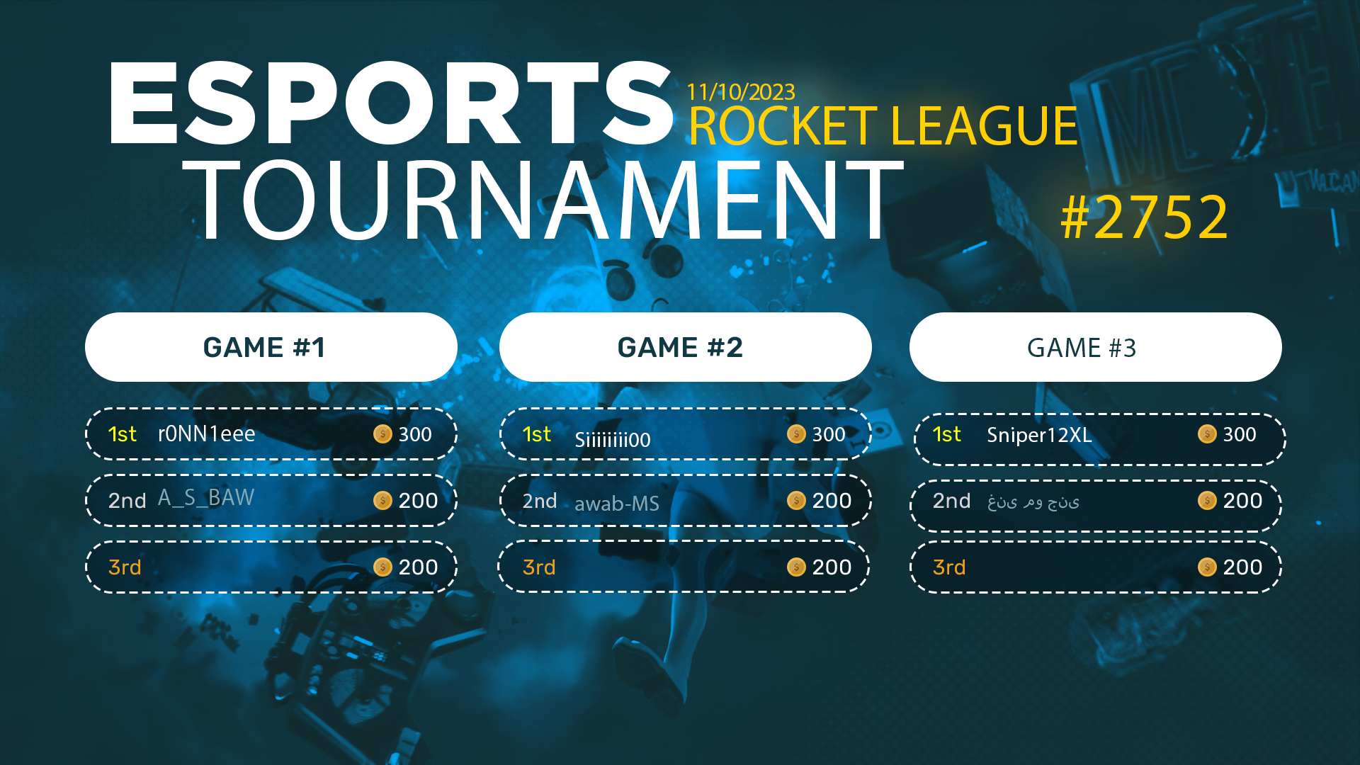Esports Tournament #2752-ROCKET LEAGUE- 11/10/2023