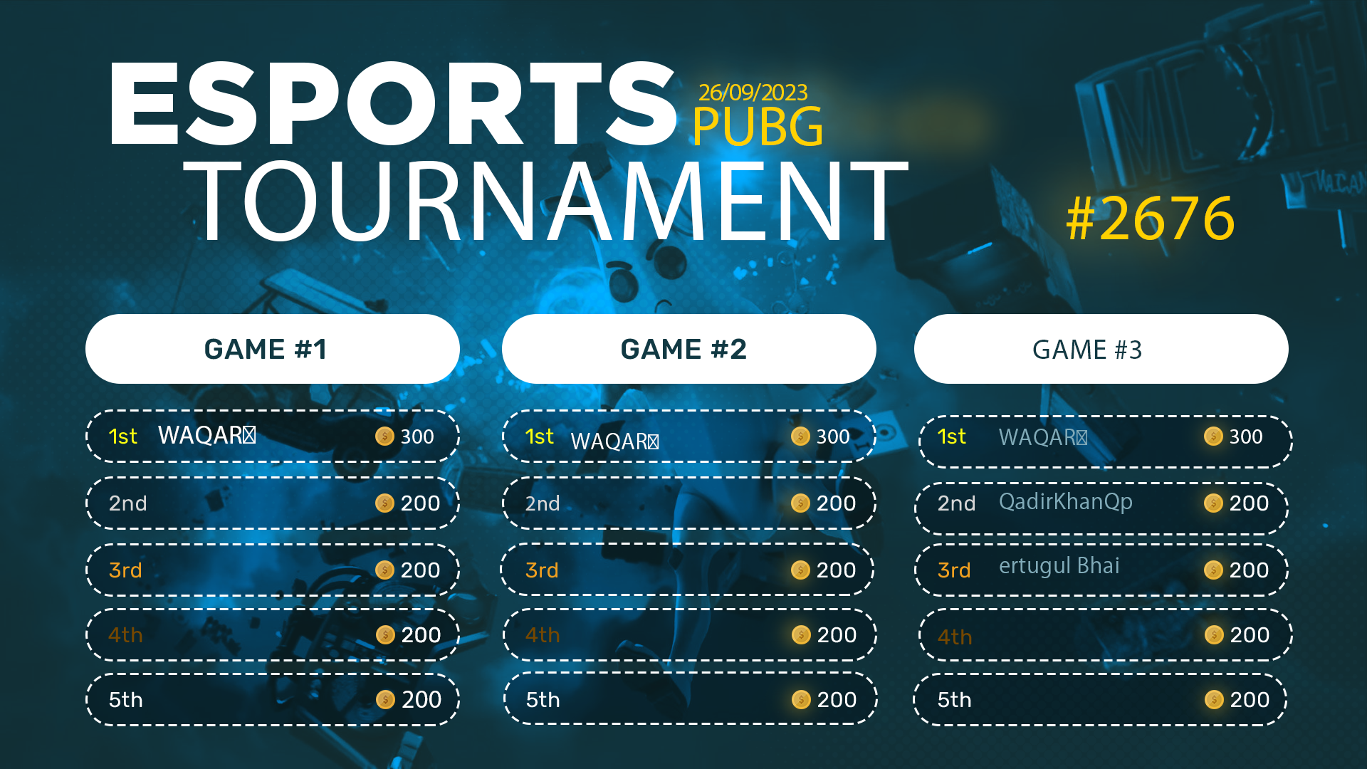 Esports Tournament #2676- PUBG Mob- 26/09/2023