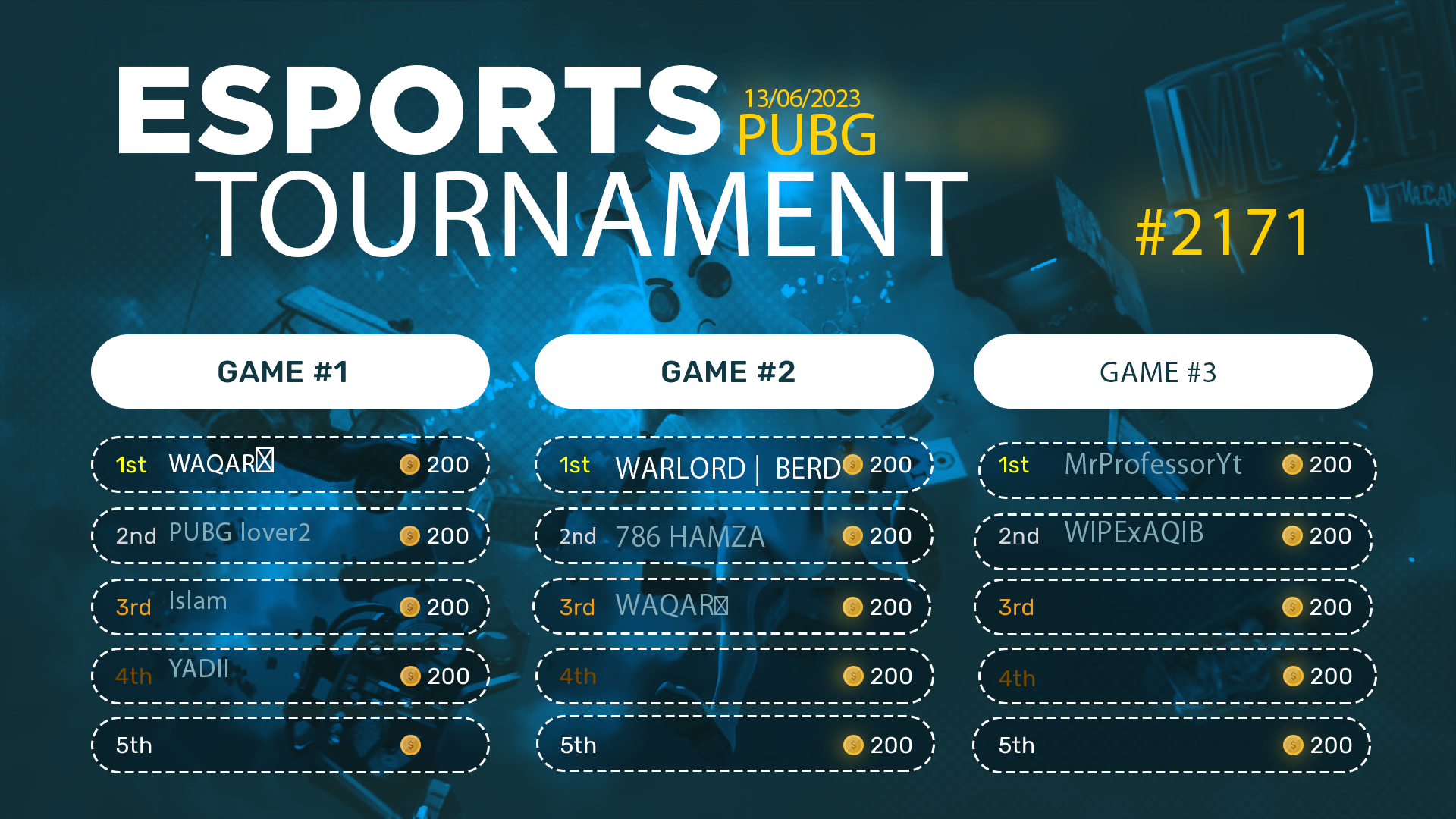 Esports Tournament #2171- PUBG Mob- 13/06/2023
